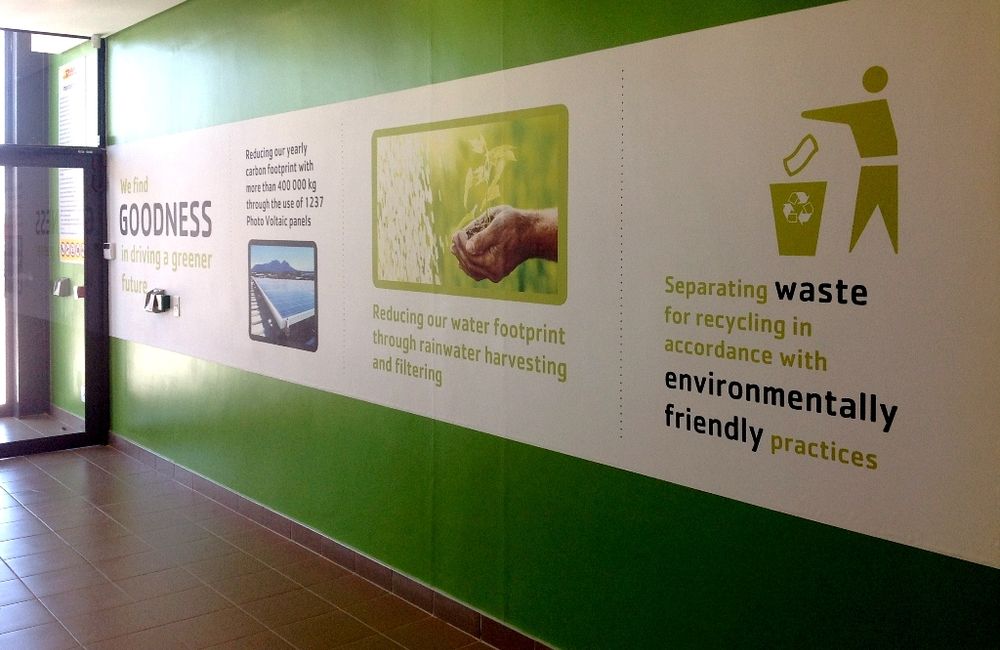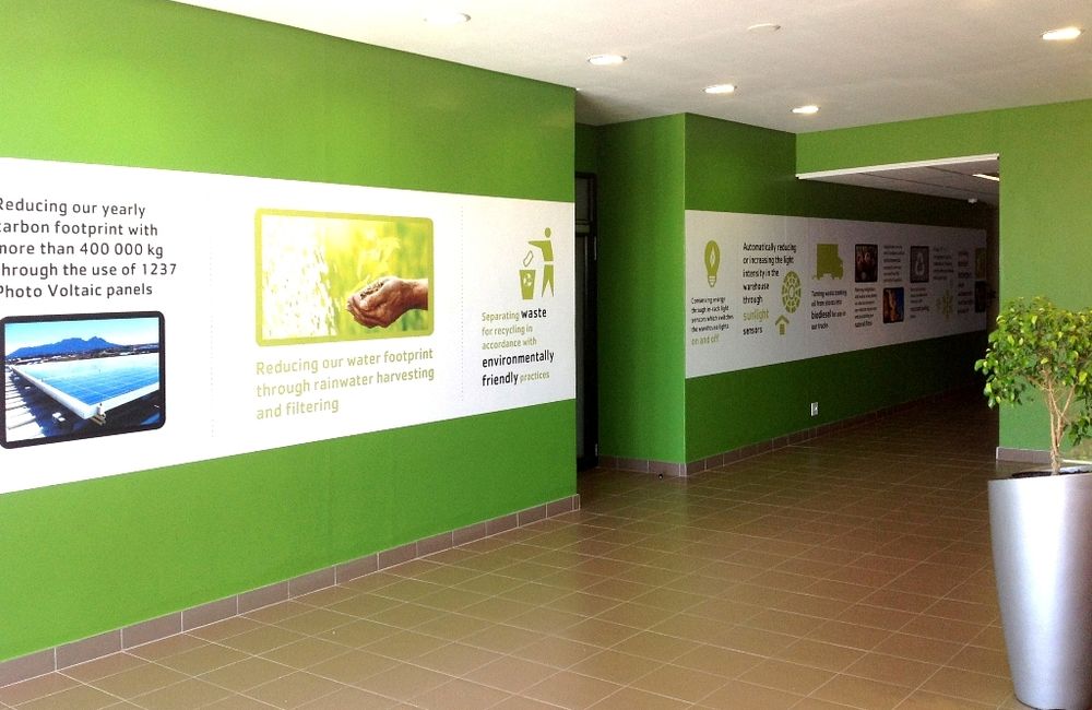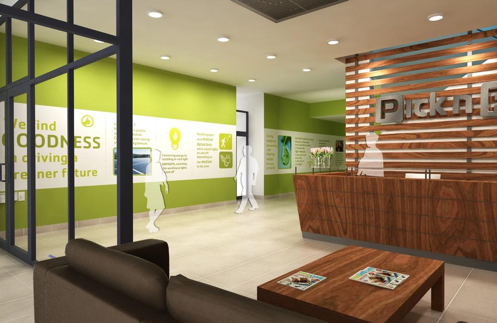 Aside from the Reception Area being "the face" of this impressive facility and with the obvious requirements of being functional and "on brand", was the need for the area to communicate, to the visitor, the green environmental practices and latest innovations used in the construction of the centre and in Pick n Pay's drive at becoming more environmentally sensitive.