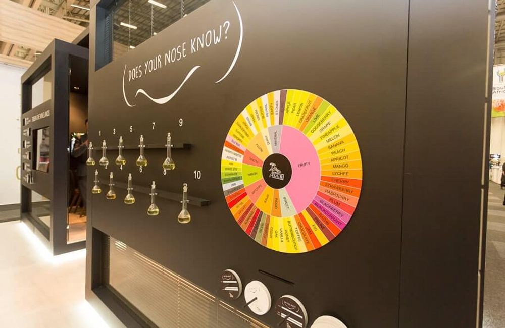 In an effort to differentiate the brand from the familiar wine showcase presentation and the competition, we created a campaign to serve as a point of engagement with trade buyers and show visitors. The “Does Your Nose Know Campaign” invited people to enter a competition that required one to match various scents housed in an array of test tubes to specific wines on a tasting wheel. The interactive experience created a fun element to the regular business dealings and provided a point of discussion at the exhibit. The trade show stand itself was open and inviting and the offset of striking backlit and scrolling visuals against wood finishes ensured a striking presence at the show. We allowed for some private meeting spaces as well as a wine tasting area for buyers to savour the reputable DGB wine collection.