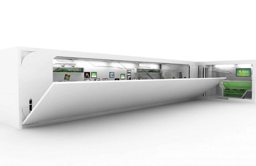 Pop-Up retail mobile units are fast becoming a marketing trend around the world. The clever 'surprise marketing' tactic enables a brand to pop-up, engage and then disappear again. HTC needed a mobile boutique so we designed one using 2 containers, 12ft and 6ft respectively.