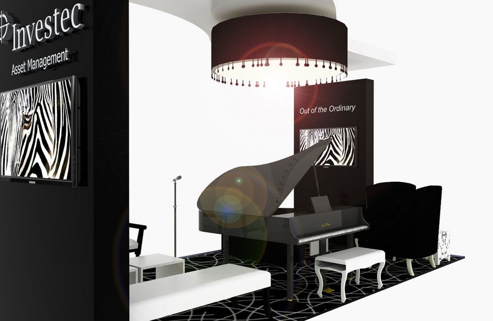 A trendy Jazz Lounge was part of our unconventional proposal for Investec's participation in a trade fair. The aim was to create a brand experience that would leave the visitor with a lingering memory. Investec Asset Management is an international specialist provider of investment products and services with a reputation for out of the ordinary thinking.